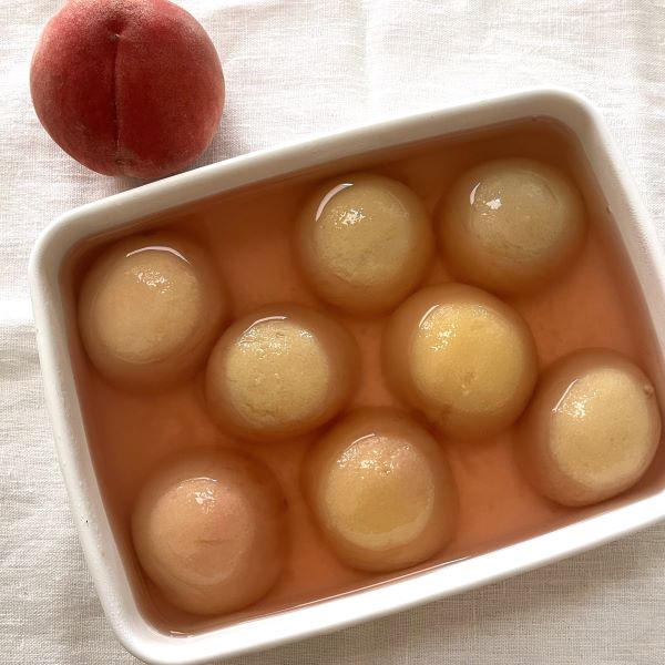 桃の季節に、箱でお得に買えたときは、コンポートにするのがおすすめ。そのまま食べても、ヨーグルトやゼリーに入れても◎ シロップは炭酸で割れば桃ドリンクに。水と砂糖だけで簡単に作れて、皮を下にして茹でればつるんとむけてほんのりピンク色に。ちょっとハズレちゃった桃も、この方法なら美味しく変身しますよ。保存にはフタ付きのホーロー容器が便利です!