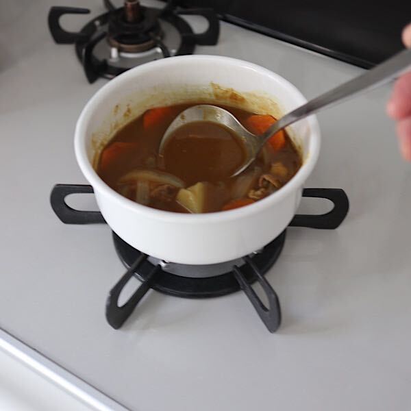 野田琺瑯の保存容器といえば「角型」が有名ですが私は断然「丸型」派です。角型は冷蔵庫でも場所を取らないのですが、丸型のいいところはこのままコンロにかけれるところ。前日に作ったカレーが余ったら、この容器に移し替えて翌日の在宅ランチ用にします。14㎝以上なら五徳にもちゃんと乗りますよ。さらに、四隅がないので洗いやすく汚れが残らない!カレーなど油っぽいものは特におすすめです。ラウンドシリーズも入れ子で収納できるので、サイズ違いを揃えて容量によって使い分けています。