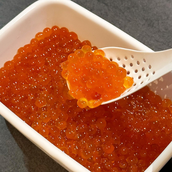 仕込みに使う保存容器は琺瑯製品を多く使っています。一番長い付き合いは野田琺瑯。WMFのマルチポットもそうですが、ガラスコーティングの製品に厚い信頼を寄せている私。いくらの醤油漬けも信頼の野田琺瑯で漬け込みます。冷蔵していた生すじこに熱湯を注いて1分間ぐるぐるかき混ぜたら、その後はかき混ぜると水を入れ替えるを繰り返して汚れ取り。綺麗になったら漬け汁を注ぐだけ。野田琺瑯の穴あきレンゲスプーンですくい上げ白ごはんに注げば…「美味しいしか言わない私」の出来上がり。