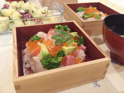 お節料理やピクニックのお弁当に良く使うお重ですが5寸は器としてもちょうど良いサイズです。 ちらし寿司1人前を盛りつけました。和食には器として使えば高級感がでて御祝のお食事や大切なおもてなしにも使えます。