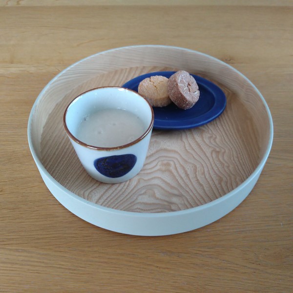 呉須の深い青に心を惹かれたBAR BARのそば猪口は、大胆な丸文がかわいらしくグレーがかった白磁にほうじ茶や甘酒が似合います。そばちょこは、おそばを食べるよりも湯のみや小鉢代わりに使うことがよくあり、買いやすい価格帯のものが多いのでいつの間にか増えてしまいます。米麹の甘酒が手に入りやすくなって好んで飲むようになりました。疲れた時や小腹がすいたとき「健康にいいから!」と罪悪感なくいただいています。