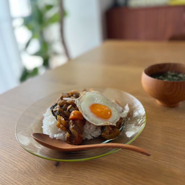 ポトペリーのビッテ プレートは、透明感のあるガラスに手描きの縁取りが施された美しいプレートです。冷やし中華やカッペリーニパスタ、炒飯などに最適なサイズ、ガラスと鮮やかなカラーのデザインが涼やかな気分をプラスしてくれるので夏にぴったり。業務用ガラスウェアのDURALEX社の器がベースになっているので扱いやすく、食洗機にも対応しています。今日のランチはラタトゥイユをリメイクした夏野菜とサバ缶カレー。汁気が少なめのカレーにもガラスのプレートがよく合います。