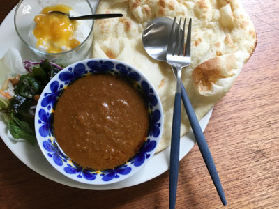 キーマカレーランチでモナミのボウルのブルーと合わせてみました。色違いのブラックやホワイトは来客やちょっと手の込んだ料理に合わせて使いますがブルーはカジュアルに普段使いとして使ってます。北欧食器は美しいブルーの食器も多いので食器との相性もいいですよ。
