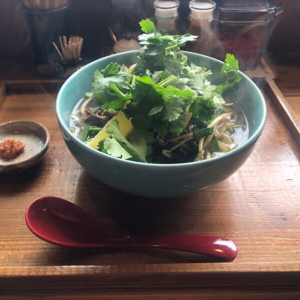 梅春の頃、訪れた那覇のおしゃれすぎてカフェのような沖縄そばの人気店「オキナワ ソバ EIBUN」。オーダーした「牛もやしそばパクチーまみれ」が、この器に盛られて登場!美しいブルーグリーンは、白い麺もパクチーの緑もすごく映えていつもより食欲増進!あっという間に汁まで飲み干してしまいました。まるで沖縄の海のような色で、こんな時だからこそ、心が晴れる器を取り入れたいなと思いました。