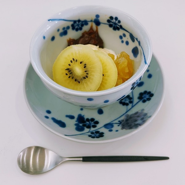 クチポールといえばまん丸なスプーンを思い浮かべると思いますが、流線形が美しいこのMIOシリーズ。MIOという名前は日本をイメージして付けられたものだそうですよ。クチポールのスタイリッシュさはそのままに、口に運びやすい形でついつい手に取ってしまいます。今日のおやつは撮影で使った果物とアイスをスタッフ三木がパパっと盛り付けてくれたもの。美しい!おいしくいただきましたよ。