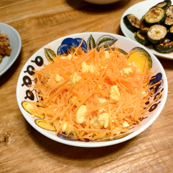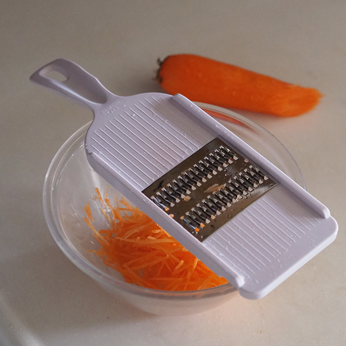 貝印のスライサーと一緒にお迎えしたせん切り器。こちらも性能・コスパ共に最高でした。人参1本が簡単にせん切りにできて、しかも作業が楽しいんです。もっとやりたい気持ちになりますよ。気持ちが抑えきれず追加でせん切りした分はキャロットラペに。肌に良いβ-カロテンは油と一緒にとると吸収率が上がるので、サラダの場合はオイル系ドレッシングがお勧めです。夏の紫外線対策にもどうぞ。