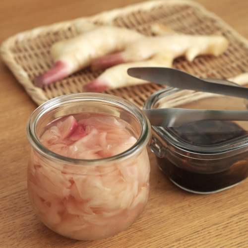 サンクラフトから出ている包丁職人が作ったキャベツスライサーをお迎えしてからは新生姜が出回る時期が今まで以上に楽しみになりました。私はお寿司屋さんの薄~いガリが大好きなのですが、このスライサーを使えば家でもお店レベルの薄さが再現できます。右側の醤油漬けはスタッフ中島から教わったもので、スライスしてサッと湯通しした生姜の水気を切って好みのお醤油に付けただけのもの。お刺身に添えて食べるのがおすすめと言われて試してみたら本当においしかったのでみなさんもお試しあれ♪