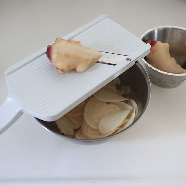 新商品の商品撮影のとき、このスライサーで作った新生姜の甘酢漬けを味見させてもらいました。最初お店で買ってきたのかと思ってしまったくらい生姜が薄くてびっくり!お寿司を食べるときもガリだけ先に食べてしまうくらい好きなのでこれが自宅でできるなら!と早速購入。新生姜を買ってきてこのスライサーでスッスとあっという間に出来上がり♪庖丁では絶対にできないくらい薄~くスライスできました。おうちでこんなに簡単にできるなんて、ガリ好きにはぜひぜひおすすめします!