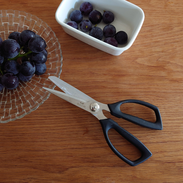 この季節になると母が三次ピオーネを送ってくれます。食べきれない分はぶどう農家さんのSNSで見た「1粒ずつ枝を残して切り離す」という方法で保存しています。たわわなぶどうの隙間からはさみを入れてカットするんですが、これが意外と大変。。。と思っていたのですが、今年は違った!貝印のはさみは固い枝でもスパッと切れるし、精度が高いから刃先でのカットも楽勝。「さすがだな~」なんてつい独り言が出ちゃうくらいでした。