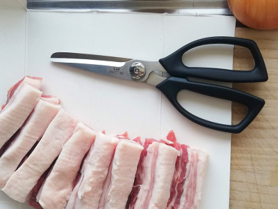 ブロック肉をキッチンばさみで切るなんて自分にびっくりですが、切れました。貝印のキッチンばさみはグリップに安心感があって力も入れやすくて快適。もっと早く買いかえれば良かった!私のように料理が苦手な方は良い道具に頼るべき。作業中のプチストレスが減りますよ。