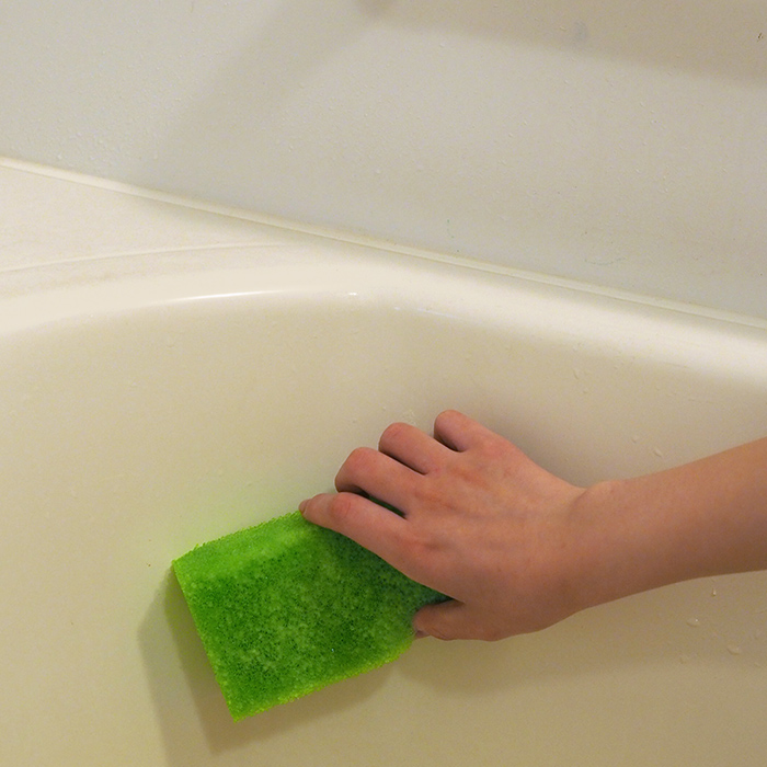 台所ではサンサンスポンジを愛用していますが、お風呂掃除にはグリーンのLサイズを使っています(何気にジャストサイズ!)。硬すぎずでも柔らかすぎない絶妙な弾力で、お風呂掃除にもピッタリです。さらに、驚くほど泡持ちが良く、少量の洗剤でしっかり洗えるのもうれしいポイント。水切れが良いので、気づいたらカビが…なんてことも少なそうです。サンサンスポンジは「替え時迷子」になりがちですが、お風呂掃除用はさらに迷子になりそうな予感。2個セットですがストック用も圧縮パッケージに入っているので、場所を取らずに収納できます。