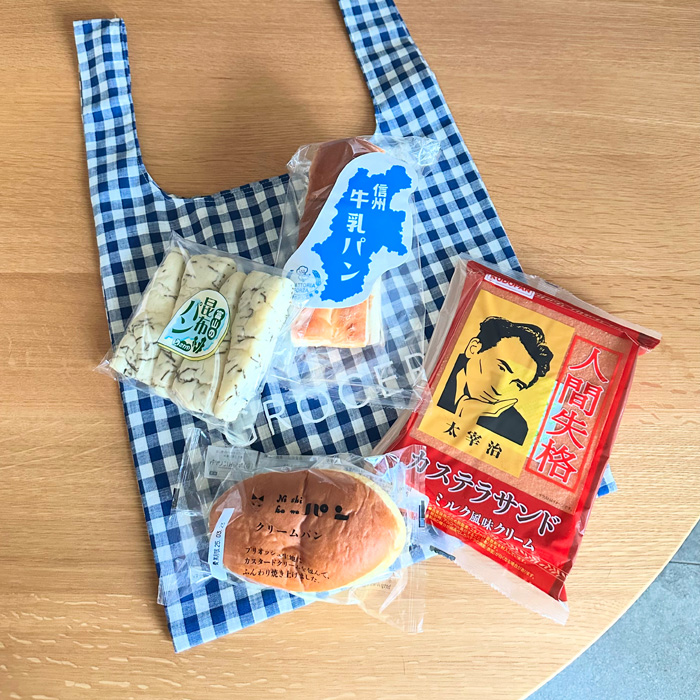 サンクのギンガムチェックグロサリーバッグ。可愛いでしょう。ネイビーかブルーかで迷っている方もいらっしゃるでしょう。私は迷わずネイビーにしました。近頃は大きいバッグを持たずに出歩くのですが、出先で美味しそうなものを見つけると買わずにはおれないのでこのグローサリーバックで対応するようにしました。写真は先日駅ナカで見つけてしまった全国のご当地パンイベント。場所代があるので割高でしたが買っちゃいますよね。この程度のパンなら12個くらい入りそうでした。