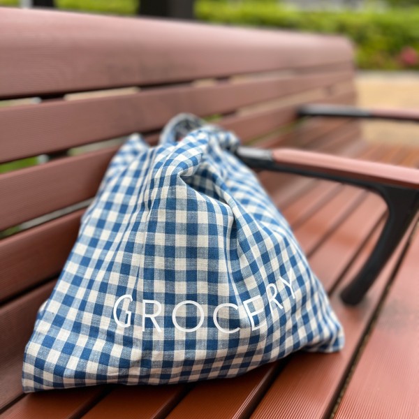 いつもバッグに忍ばせておきたい、CINQのギンガムチェックグロサリーバッグ。可愛いだけじゃなく、優しい肌触りと丈夫さを兼ね備えています。内ポケットに折りたたんでコンパクトに収納できるので、急な買い物や荷物が増えたときにも大活躍。長めの持ち手は肩掛けしやすく、広めのマチで見た目以上の収納力。スタッフ千秋はネイビー派ですが、私はダサかわいさのあるブルー派です。かわいいのでスマホストラップか小さなポシェットと一緒にメインバックとして使っています。