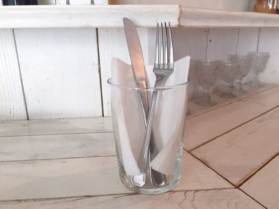 お気に入りのカフェでランチをしたとき、カトラリーがこのグラスで出てきました。 コップとして使う以外にも、こんなすてきな使い方もあったんですね。隠れた魅力を発見しました!