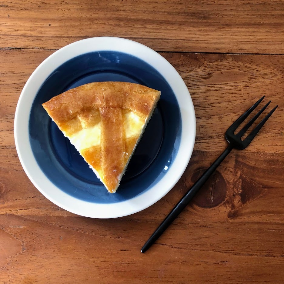 今日のおやつは岩手トロイカのチーズケーキ、おいしいんですよね。初めて食べたのはスタッフ中澤がお取り寄せをしたのをオフィスでごちそうになった時。その後、以前のプロキッチンの事務所にほど近い東銀座にある岩手県のアンテナショップ「いわて銀河プラザ」で販売していることを知りました。限定品なのでいつでも買えるわけではないのですが、それでもうれしい。イイホシさんのディシィーズインクブルーはツヤがあるきれいな紺で美味しさがアップする気がします。