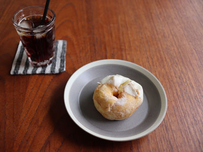 鎌倉や逗子に行くと必ず買ってきてしまうくらい大好きな「ミサキドーナツ」のドーナツ。 お店1番人気のこのレモンクリームチーズドーナツはホワイトチョコでコーティングされていてレモンが乗って見た目も爽やか! そんな爽やかドーナツにはマットな質感で落ち着いた色味のモスグリーンの器でいただきます。 この器、おやつを乗せるのにちょうど良くて、おやつタイムはこの器ばかり使ってます。