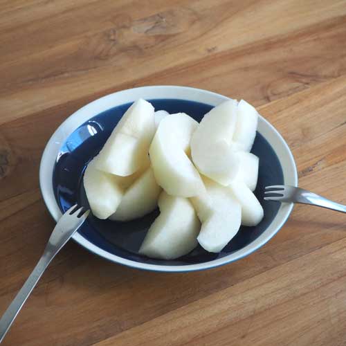 関東で出回っている梨は千葉県産や神奈川県産が多いですが、福岡県産の梨を見つけたので早速手に取り、実食。ツヤのある質感とインクブルーの色味にみずみずしい梨がさわやかに映えますね。18cmのプレートの用途はスイーツやパンやサラダなど幅広く、取り分け皿としても使い勝手が良いので何枚あっても助かります。後で調べてみたところ福岡県は九州一の梨の産地とのことで、勉強になりました。
