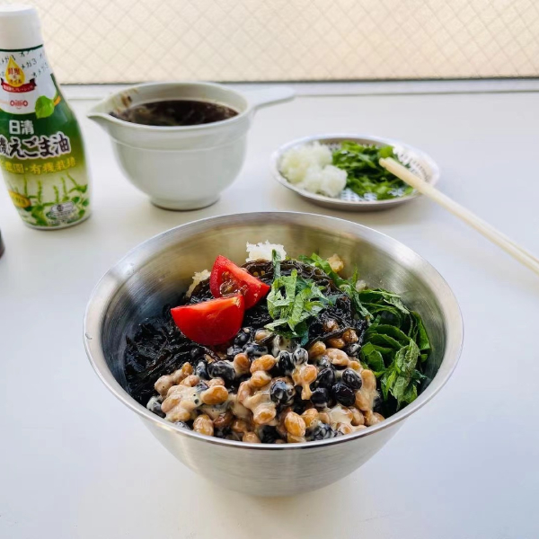 最近、健康のためにほぼ毎日納豆を食べています。納豆をさらに美味しくいただきたいので、色々なレシピで作ってみました。その中、一番好きな組み合わせは今回の納豆そばです。 食器はconteのまかないボール、丸バット、平ザルをセットで使っています。13cmの小さいサイズなので、キッチンだけではなく、食卓に出しても良い感じですね! あと、今回の組み合わせは本当においしいと思いますので、 皆さんにもシェアしたいです!納豆好きの方、是非試してみてください! お蕎麦:1食分 納豆:2パック 黒豆と大豆 もずく酢:1パック 大葉:お好きな量でどうぞ 大根おろし:少し多めにおろした方がいい! 荏胡麻油かオリーブオイル:1さじ ミニトマトは飾りだけ、他の食材でも大丈夫です。 最後、練りワサビを添え、麺つゆをかけます。 混ぜてから食べましょう!