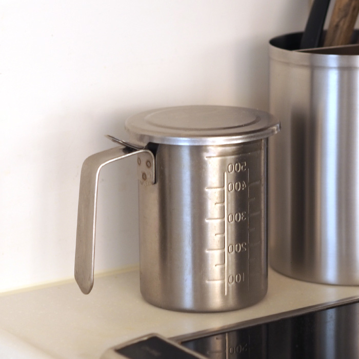 少量の油で揚げ物や揚げ焼きをする方、油慣らしをした後の油を戻すとき、勢いよく油を出し過ぎちゃったときは小さい300ml。よく揚げ物をされる方なら大きい700mlがおすすめです。オイルポットとして使わないときは計量カップとしてもお使いいただけます。
