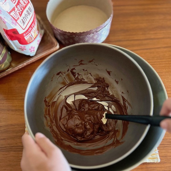 ことしのバレンタインは手作りガトーショコラ♪スイーツ作りには柳宗理のボウル5点セットが大活躍します。特にチョコレートの湯煎。一番大きな27cmに50〜55度くらいのお湯を入れ、刻んだチョコレートを入れた23cmボウルを重ねます。隙間が空きすぎないからお湯が飛んでチョコレートのボウルに入る心配もないし、二つ一緒に支えることができるから安定感も抜群です。お菓子作りに興味が出始めた娘の熱が冷める前に・・・少しずつ製菓の道具を揃えてあげたいなと思う今日この頃です。