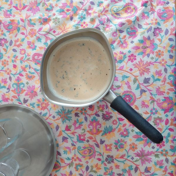 インド旅行から帰ってきた家族が「本場の入れ方を教えてもらった」と意気込んでチャイを作ってくれました。いつもは野菜の下茹でやお味噌汁を作るときに使っているのでミルクパンとしての機能を認識していなかったのですが、カップに注ぐときに垂れない&切れの良さを実感。牛乳をしっかり沸騰させるのでお鍋の内側にこびりついてしまいますが、つや消しタイプなので傷を気にせずスコイでがしがし洗っています。