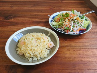 今日のランチはエビピラフとサラダ。どちらもイイホシユミコさんのプレートにしてみました。カラーのバリエーションがありますが、どれも派手な色ではないのでどんな食品にも合わせやすく、それでいながら白い縁が引き締めてくれるので便利なプレートです。