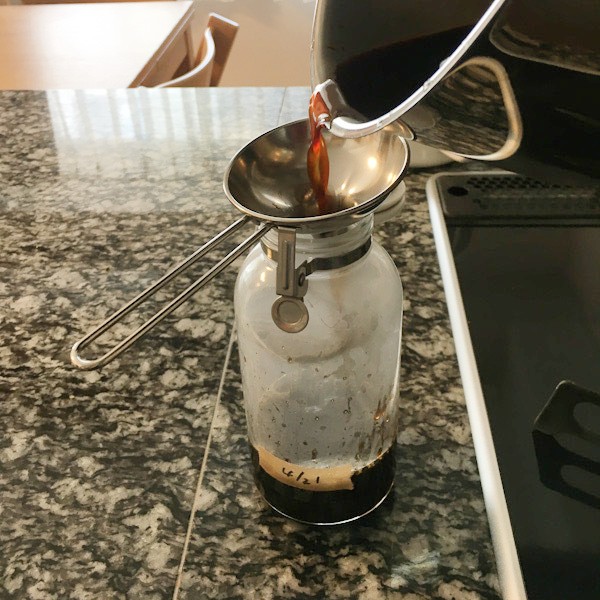 かゆいところに手が届く家事問屋の道具たち。我が家のキッチンに着実に増えています。このじょうごもそんなアイテムのひとつ。手作りの濃縮つゆやドレッシングなどをセラーメイトのびんに移し替える時、じょうごがあると格段にスムーズです。写真をとる都合で持ち手をつかんでいませんが、しっかり持てる持ち手があるのに小さい引き出しにも入るサイズがお気に入りです。