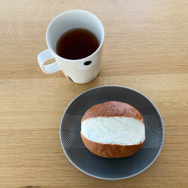 パンにたっぷりのクリームをはさんだマリトッツォ。話題になるよりずっと前からプロキッチンの近くにあるオリミネベーカーズさんに並んでいて、生クリームがとっても軽やかで甘すぎないので度々購入しています。バーズワーズのプレートにのせるとジャストサイズで真っ白なクリームが映えてさらにおいしくいただけますよ。