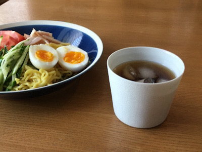 じめじめ梅雨や暑い夏は食欲がなくなりがちなので汁めんやスープで十分栄養をとりたいところ。暑い夏のランチに冷たい豆乳そうめんをよく作っています。無調整豆乳にだししょうゆを入れたスープによく冷やしたそうめんを投入し、トマトときゅうりスライスをのせてごまとごま油をたらり。FRORISのボウルは容量が少な目でそうめん1束分にちょうどいいです。