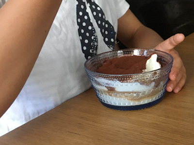 ヨーグルトやフルーツ、冷製スープなど、今の季節にぴったりのょうどいいサイズ感のカステヘルミのボウル。アクアはさわやかなブルーで涼やかです。今日は簡単レシピでティラミスをこどもとつくりました。