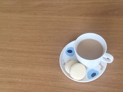 私は基本的にはシンプルなものが好きなのですが、アクセントをつけるためにもときどき柄物の器を使いたくなります。マリメッコといえばこのUnikko柄。ミルクティーベージュとブルーが上品です。ティーマC&Sのカップとクッキーをのせてほっと一息つきましょう。際限なく食べてしまうので(汗)クッキーはここにのるだけでストップします。