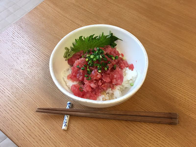 家でのひとりランチのときにはよく丼ものですませちゃいます。カサゲントのボウルはちょこっと盛りの丼にちょうど良いサイズ。素朴なほっこりフォルムが大好きなテーブルウェアです。見た目はずっしり重そうですが、思ったよりずっと軽いんですよ。今日のお昼はネギトロ丼です。