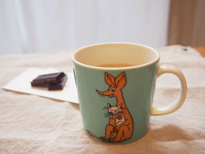このマグのスニフは「ムーミン谷の彗星」にでてくる子猫を抱っこしてる姿なのかな?臆病で弱虫キャラなスニフですが、心優しいかんじがあふれています。裏の大爆笑している姿が、我が家の下の子によく似ています。