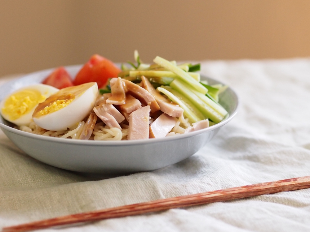 夏に食べたくなる冷やし中華。アイスブルーのお皿は涼やかな色合いなので暑さをやわらげてくれそうな気がします。深さのあるお皿なので汁けのある麺ものも、カレーもおかずもしっかり受け止めてくれます。ちょっと盛りすぎてしまいましたが、このぐらいしっかり食べて、夏バテしらずでいたいですね。