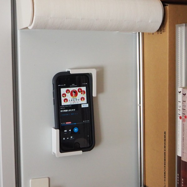 ラジオやpodcastなどの音声コンテンツは台所仕事する時の力強いお供。スマホやタブレットをスタンドにたてていると油はねや水濡れ、倒れたりしないかひやひやしていました。このマグネットタブレットホルダーで冷蔵庫の横側面に取り付けたところ、その不安が解消された上に定位置も決まり一石二鳥。かゆいところに手が届く山崎実業のアイテムですが、一番心強いのがマグネットの強力さ。つけるときに「ガチッ」と音をたててしっかりとくっついてくれるのでタブレットを置いても安心です。