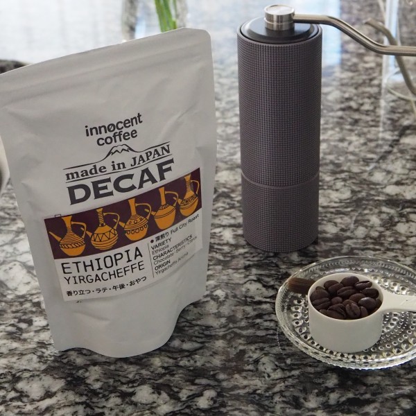 コーヒー大好きですが、胃も荒れるし眠れなくなってしまうのでカフェイン有のコーヒーは1日1杯程度におさえています。夕方以降に飲みたくなったときはデカフェの出番。少し前までは、デカフェは味が落ちるイメージがありましたが、イノセントコーヒーは本当にカフェインレス?と思うくらい美味しいんです。豆の品質だけでなく、カフェインの除去法も安心安全で時々こども達も飲んでいます。深煎りのエチオピアはチョコレートなど甘いスイーツと一緒のひと休みタイムにぴったりです。